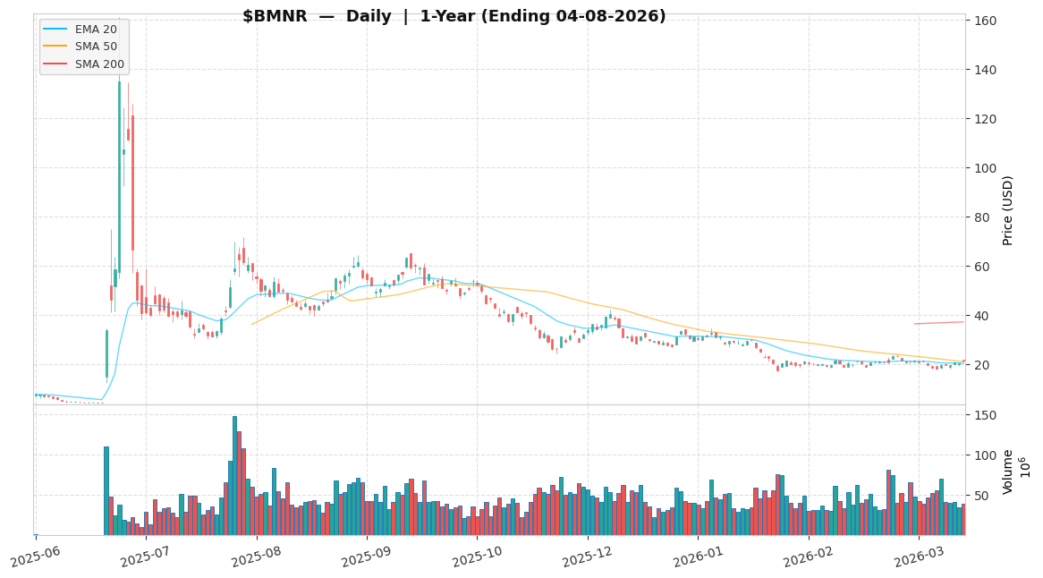 $BMNR은 2026년 4월 9일(NYSE 첫 거래일) 기준 $21.52에 거래되고 있으며, 이는 52주 최고가 $161.00 대비 -86.6%, 52주 최저가 $3.20 대비 +572% 수준으로 이 포지션의 극단적 이진 특성을 반영합니다. 전통적 P/E 지표는 여기서 의미가 없습니다. TTM EPS는 -$46.42이지만 이는 운영 손실이 아닌 암호화폐 보유 자산의 비현금 공정가치 조정을 반영합니다. 영업 매출은 $6.95M(TTM)이지만 $196M의 스테이킹 수익이 실질 경제적 엔진입니다. 시가총액 ~$98억 대비 총 보유 자산 $114억(암호화폐 + 현금 + 전략적 포지션)을 감안하면, 주가는 NAV 대비 ~14% 할인에 거래되고 있습니다 — ETH가 현재 수준을 유지한다면 구조적 저평가입니다. Bitmine FY2025 10-K에 따르면 부채/자본 비율은 ~0%로, 레버리지를 활용하는 크립토 트레저리 피어들과의 핵심 차별점입니다.