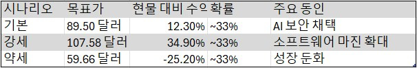 당사의 기본 시나리오 목표가는 89.50달러로, 현재 수준 대비 +12.3%의 상승 여력을 나타냅니다.