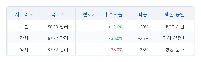 기본 시나리오 목표가는 56.03 달러(56.6배 P/E)로, 수익 회복에 따른 재평가를 반영합니다. 기술 섹터 전반의 디레이팅 국면에서는 단순 멀티플 압축만을 이유로 포지션을 청산하기보다는, 핵심 노출은 유지하되 비중 조절에 더 초점을 맞출 것입니다. 강력한 청산 트리거에는 매출 성장률 5% 미만 지속 또는 매출 대비 CapEx가 40%를 초과하는 경우가 포함됩니다.