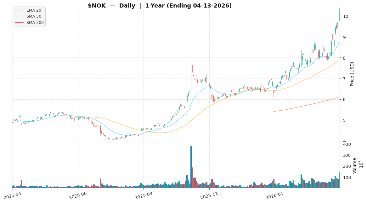 Nokia Oyj ($NOK)는 재평가될 준비가 되어 있습니다. 2025년 4분기 실적은 순매출 3% 증가와 2026년 영업이익 목표 20억~25억 유로를 제시했습니다. 이러한 즉각적인 촉매 요인은 시장이 고마진 엔터프라이즈 및 프라이빗 무선 부문으로의 전략적 전환 실행 가능성을 평가하기 시작하면서 구체적인 변곡점을 제공합니다. 최근 5일간 +17.18%의 주가 상승은 초기 투자자 낙관론을 반영하지만, 저희는 재평가가 아직 완전하지 않다고 판단합니다.